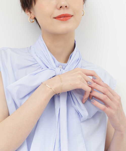デザインが異なる2本のバングルを重ねづけしたような見え方がポイント。細いライン使いなので抜け感があり、手首につけるだけで、女性らしい印象を高めてくれます。トレンドや季節に左右されることなく、オンにもオフシーンにもあわせていただけます。