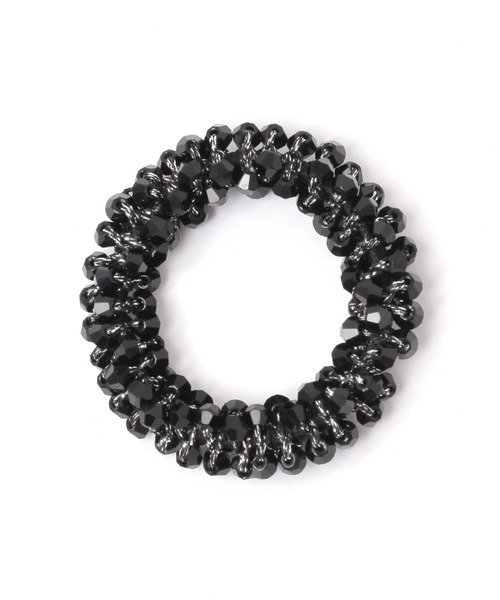 ビーズを編み込んだデザインがポイントのヘアゴム。さっと結ぶだけで、スタイリングのアクセントになるアイテムです。