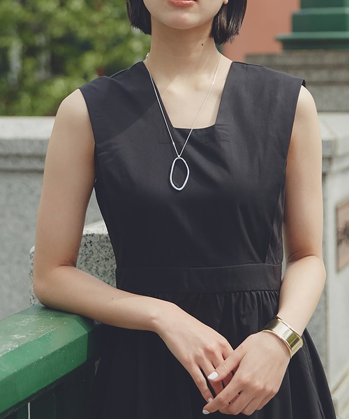 華奢なチェーンにオーバルパーツを組み合わせたロングネックレス。少し変形されたオーバルパーツがアートライクなアクセントになります。大人カジュアルにもフェミニンなコーディネートにも取り入れやすいアクセサリーです。
