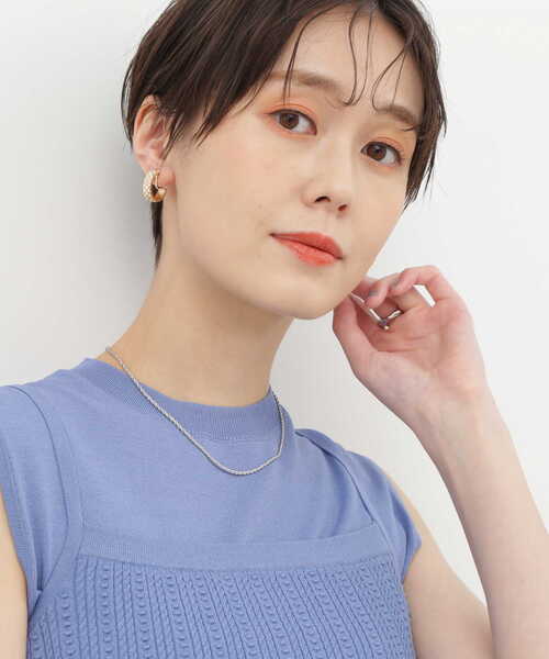 華奢なチェーンをツイストさせたネックレス。やや短めのツイストチェーンは、首元の開き具合関係なく、顔まわりを印象的に見せてくれます。カジュアルにもキレイめにも合わせられるデザインは、オンにもオフシーンにも活躍できます。