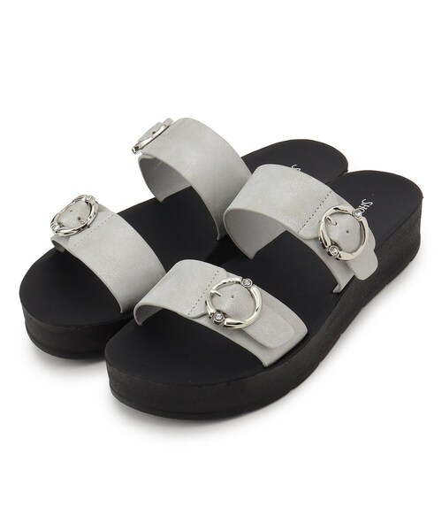 【デザイン】 クールなブラックのソールとワンポイントのビジューがはいったリングパーツが大人っぽく上品でエレガントなデザイン。 ダブルベルトのカジュアルデザインでラフなデザインでありながらも、きちんとした女性らしい抜け感を演出してくれます。 カラーはムラ感があり落ち着いたシルバーカラーと、涼し気なホワイトの二色展開。 トレンドのビジューサンダル、おすすめです。 店舗へのお問い合わせ商品番号:C70-16307 ●製品寸法: 35(23.5cm):ヒール高3.5cm 45(24.5cm):ヒール高3.5cm 備考:重量:サンプルサイズ45(24.5cm)片足約225g