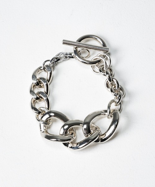 【 24SS Chain Bracelet - チェーンブレスレット 】 2024 Summer Collection サイズのことなるパーツを組み合わせ リニューアルされたロジウムメッキ加工のブレスレット ≪ 素材特性 / Fabric properties ≫ 亜鉛、真鍮、アルミニウム、ステンレスのパーツを使用し結合した1本のブレスレット。 日本の職人がハンドメイドで作成しているのもポイント。 メインとなるセンターの大きな喜平チェーンが存在感のあるデザインで 光沢感のあるロジウムメッキを施すことで高級感と清潔感のあるアクセサリーが完成しました。 ロジウムは非常に硬い金属で 摩耗や変色への耐性が強い金属となっています。 このロジウムの特性を活かし酸化しづらく硬いメッキとして 利用されているのがロジウムメッキとなります。 ≪ デザイン・ディテール / Design・Detail ≫ KUUUPY 2024年Ver.としてリニューアルされたデザイン。 多様な種類のデザイン、マテリアルを使用している事と 各パーツを結合したのは日本の職人がハンドメイドで作業している事がポイントになります。 ここまで多種類のパーツを駆使してデザインされた ブレスレットは他に類を見ない珍しいアイテムです。 多様のコマを繋げたチェーン本体とT型の留め具で固定ができます。 センターの2.5㎝幅からなる喜平チェーンは 手首周りで大きく主張し過ぎることなく高級感と存在感をアピール。 ロジウムメッキの光沢感が手の動きに応じて光を細かく反射することで、 繊細でフェミニンな印象を与え、肌へナチュラルに馴染みます。 幅広いコーディネートに合わせやすい優秀なアイテムとなっています。 袖丈の短くなるこれからのシーズンに大きく活躍し、 腕周りを彩ってくれるブレスレットを是非お楽しみください。 ≪ サイズ ≫ ・全長 20.5㎝ ・センター喜平チェーン幅 2.5㎝ ※屋外での撮影画像や光の当たり具合で色味が異なって見える場合がございます。 商品の色味はスタジオでの詳細画像をご参照下さい。 [ KUUUPY ] シンプルながらも洗練されたデザインをテーマにトレンドは勿論のこと 着回しに特化したアイテムを素材やディテールに拘りベストプライスで提案 ▼商品のお気に入り登録 完売カラーの再入荷通知や、ラスト1点、セールの通知をお知らせ致します。 ▼ブランドのお気に入り登録 新商品や再入荷など、いち早くブランドの情報を受け取ることができます。 是非ご利用頂き、お買い物をお楽しみ下さい。