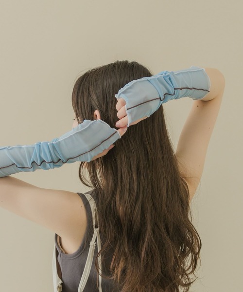 【手元に華やかさをプラス】柔らかく程よい透け感がシーズンライクなシアー素材で仕立てたアームカバー。配色のメローデザインを落とし込んだトレンド感のあるディテールがポイントのひとつ◎トップスの袖からチラッと覗かせたり、ハーフスリーブたノースリーブと合わせてスタイリングのアクセントに取り入れてみて!※商品画像は、光の当たり具合やパソコンなどの閲覧環境により、実際の色味と異なって見える場合がございます。予めご了承ください。※商品の色味の目安は、商品単体の画像をご参照ください。▼お気に入り登録のおすすめ▼お気に入り登録商品は、マイページにて現在の価格情報や在庫状況の確認が可能です。 お買い物リストの管理に是非ご利用下さい。