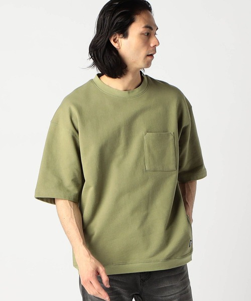 程良い厚みの生地感とゆとりのあるサイズ感、便利なポケット付きの半袖スウェット ・デザイン 通常のスウェットより薄手の生地なので1枚でも、夏でも着用出来るようにしています。 脇にはポケットが付いていているのでポケットが少なくなるシーズンにに便利です。 胸ポケット、腰ポケットの袋布はメッシュ素材を使用しているので軽く、マスクなどを入れた際に埃や糸くずを付着するのを軽減します。 裾にリブを付ける事でスウェットの雰囲気を残したデザインにしています。 裾端にはオリジナルワッペンを付けています。 ・シルエット 程良くゆとりのあるサイズ感で、大き過ぎないサイズ感なので女性の方にもおすすめです。 インナーにTシャツを着てレイヤードする事も出来ます。 ・ファブリック一般的なスウェットより軽めになっています。 綿100%なので肌触りも良く、通常の裏毛に比べると裏面のループが小さく肌の接地面も少ないのでTシャツ感覚で着用出来るスウェットです。 ・スタイリングサイズ感はゆったりとしているのでインナーに長袖Tシャツを合わせれば春、秋も着用する事ができます。 テーパードシルエットのパンツなどすっきりとしたパンツと合わせるのもおすすめです。 ※ご家庭でのお洗濯可能な商品です。詳細、取り扱い方法は商品に付いている品質表示、アテンションタグをを御確認下さい。 ***************** 裏地:なし 伸縮性:あり 光沢感:なし 生地の厚さ:やや厚い 透け:なし ***************** <スタッフ着用コメント>本社 Hさん身長:178cm/体重:66kg/体型:普通/普段サイズ:48(L)/着用サイズ:48(L) サイズ感:ゆったりとしているので、インナーにTシャツも着用出来そう。 素材感:少し厚みはあるが軽いので気にならない。 着心地:ゆとりがあって着易い。立体感があるので大き目のサイズ感のシルエットが綺麗に見える。