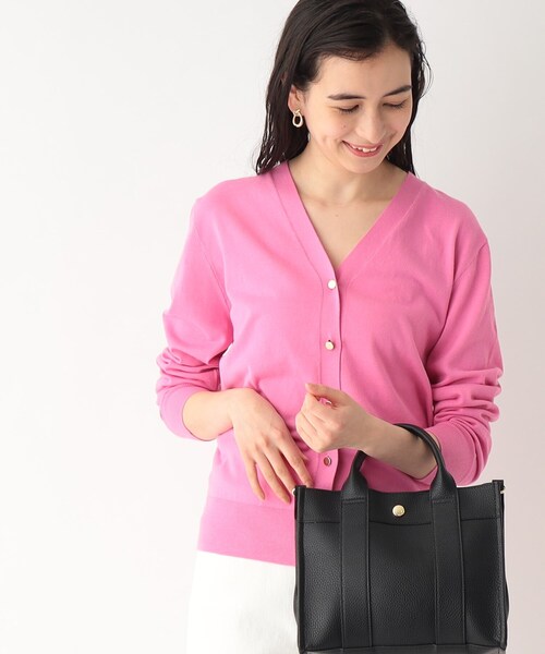 【My style is...掲載】------------------------------------------------- ▼ お気に入り登録 800人突破!-------------------------------------------------【エクストラファインオーガニックコットン】使用まるでシルクのように滑らかで美しい目面のコットン素材のノースリーブニット【デザイン】・ベーシックなVネックのニットカーディガン。・同素材でノースリーブニット(637-16026)とアンサンブルでの着用や、肩掛けスタイルもおすすめです。・夏に向けての羽織アイテムとしておすすめです。【素材】・オーガニックコットンを贅沢に使用したハイゲージのデザインニット。・サスティナブルなオーガニック綿花のうち、より滑らかで光沢感のある「超長綿」のみを使用して作っています。・肌ざわりが固かったり、カジュアルな印象になりがちな綿素材ですが、超長綿を使用することにより柔らかな肌ざわりときれいめに着られる表情に仕上げました。機能:マシンウォッシャブル、UVケア※この製品は、太陽光線中の紫外線(UV)を通しにくくします。この効果は永久的ではありません。こちらの商品は主に夏に着用いただける商品です。モデル情報:身長166cm B72 W57 H84 着用サイズ:38(M)店舗へのお問い合わせ商品番号:637-36003●製品寸法:38(M):着丈62cm B98cm 袖丈57cm 肩幅40cm40(L):着丈63cm B100cm 袖丈57cm 肩幅42cm備考: