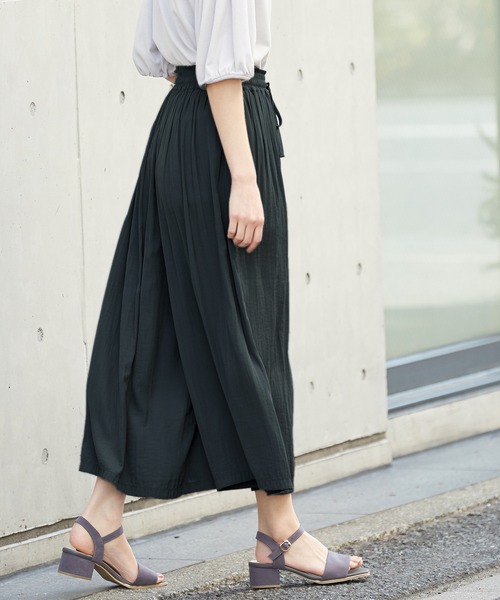 涼しげ素材で快適 【デザイン】 やさしい印象の、スカート見えするワイドシルエット。 ヒップや太もものラインを拾わず体型をカバー。 落ち着いた大人カラーのバリエーション。 【素材・機能】 やや光沢のある、さらっとしたサテン素材。 ウエストゴムでストレスフリーなはき心地。 【スタイル】 合わせるトップス次第で、ちょっとしたお出かけからリラックスシーンまで幅広く活躍。 ※ウエスト部分ゴム 品番:585-73-665