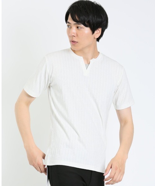 ■素材特徴 ポリエステル・レーヨンにポリウレタンを混紡したカットソー素材を使用しています。縦目のランダムテレコで凹凸感があります。 ■機能 【ストレッチ】伸縮性に優れ動きやすく、長時間の着用もストレスフリー。 ■デザイン シンプル過ぎない存在感のある、キーネックの半袖Tシャツです。重ね着風に見える衿ぐりのフェイクレイヤードと、背あてのチェック柄生地がアクセントになっています。一枚で着るのはもちろん、ジャケットやシャツ、ベストのインナーとしても便利なアイテムです。 ■シルエット 身体のラインに沿ったやや細身のシルエットでスッキリと着ていただけます。 ■コーディネート 綺麗目パンツと合わせてモードに、デニムやカーゴパンツと合わせてカジュアルに、ショートパンツと合わせてスポーティーに。プライベートからオフィスカジュアルまでオンオフ兼用で活躍してくれます。 フィット感:やや細身 シーズン:夏 展開カラー:白(ホワイト)・ライトグレー・紺(ネイビー) *アテンションタグ・洗濯ネームを御確認の上、着用又は取り扱い下さい。 *光の当たる場所や高温多湿になる場所での保管は避けて下さい。 *使用の有無に関わらず、経年劣化は進行いたしますのでご了承下さい。 *生地の裁断・縫製方法により、写真と同様の柄が出ない場合がございます。 *閲覧デバイス・環境により質感・色味に誤差が生じる場合がございます。 * ZOZOTOWN お買い物ガイド 商品のお気に入り登録 ♡をクリックしましょう!完売カラーの再入荷通知や、ラスト1点の通知、セールの通知をお知らせします。 ブランドのお気に入り登録 新商品や再入荷など、いち早くお得な情報を受け取ることができます。 最短で翌日お届け 商品をカートに入れた後、注文内容の確認ページで「即日配送」を選択していただければ、最短でご注文した翌日にお届け致します。 (ZOZOTOWNお買いものガイドをご参照ください)
