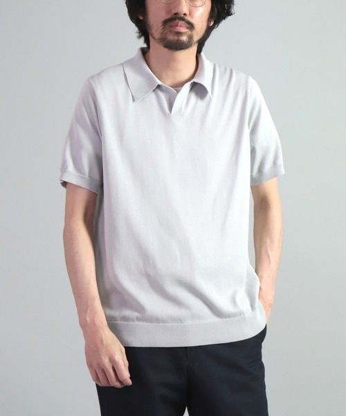 【 OMNIGOD STANDARD ITEM 】 夏に上品に活躍。大人のポロシャツ! ・ほどよい光沢感とシルキーな風合い ・ブリティッシュな雰囲気に上品に編みたてたデザイン ・素材の空気感を感じるシルエット <素材・デザイン>綿の毛羽を取り除いた綺麗な糸を使用し、強く糸を撚ることでドライな風合いを引き出しています。 ほどよい光沢感とシルキーな風合いで、夏に上品に活躍する薄手のニットに仕立てました。 衿を上品に編み立てブリティッシュな雰囲気に仕上げたポロシャツ。襟は開放感のあるスキッパータイプで大人の余裕を演出。素材の空気感を感じていただけるよう、肩幅と身幅はややゆとりのあるシルエットになっています。 …………………… 透け感:なし 厚さ:やや薄手 伸縮性:あり 裏地:なし ポケット:なし 洗濯:可 …………………… コットン100% サイズ表記は2(Mサイズ)、3(Lサイズ)となります ◇着用レビュー H176 / 着用サイズ3(L) いつもよりワンサイズ大きめで着用。 着た感じはニット素材なので伸縮性があり柔らかく着心地も軽い。 肩はやや落ち気味でシルエットはゆとりもありつつ体にフィットするサイズ感です。 開放感のあるつくりなので夏先に重宝します。 [OMNIGOD / オムニゴッド] “人が着る事”その当たり前とも思える考えに常に向き合いながら、素材や加工を駆使し、着心地や風合いの良いモノづくりを行う。人が求める本当の服、そんなモノづくりを出来ればとオムニゴッドは考えています。 ・お問い合わせ品番 : 59-0497N / 59-497N