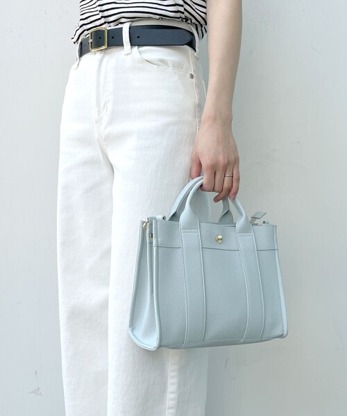 スクエアなフォルムがハンサムなミドルサイズのトートバッグ【デザイン】シンプルなデザインでどんなコーディネートにも合わせやすいトートバッグ。前面のブランド刻印メタルパーツがポイントです。本体口元は前側がマグネット仕様、後ろ側はファスナー仕様になっています。中央上部は仕切られていますが、下部はあいている仕様になっているので、お弁当箱なども収納していただけます。長さ調整可能なショルダーひも付き。内側にはポケットが一つ付いています。※ポケット数:内側×1店舗へのお問い合わせ商品番号:C71-16071●製品寸法:00:高さ21.5cm 幅(上部)25cm 幅(下部)25cm マチ11cm 持ち手上がり7.5cm ショルダー対応サイズ63~121cm備考:重量:約450g