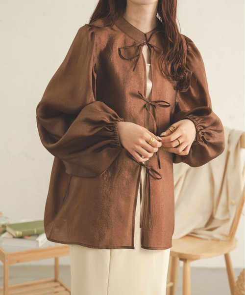 前後2WAYで印象に変化を出せる万能ブラウス♪ボリュームのある袖とリボンが可愛い。光沢感のある生地を使って華やかさも出る一枚。■point・パフスリーブ・光沢感のあるラメ素材・前後2WAY■detail立体的なパワーショルダーにバックにはリボン。レディに仕上げた1枚です。光沢のある素材だから、甘すぎず大人カジュアルにも着ていただけます。優しげでまろやかなカラーは、着るだけで気分まで華やぐ♪ナチュラルな透け感で、爽やかに着こなせます。■fabric清涼感があり暑い時期にピッタリの素材。シワになりにくく、さらり涼し気な着心地です。…………………… 透け感:あり厚さ:薄手伸縮性:なし………………… ※詳しいお手入れ方法は商品タグをご参照ください。■coordinateデニムと組み合わせれば、ヘルシーな大人コーデに。無地のホワイトは、どんなコーデにもハマる優秀アイテム!清潔感のあるストライプは、一点投入するだけで好印象コーデに仕上がります。ジャケットをプラスすれば秋口まで着用いただけます。AmbreNeigeとは...“淡色”をベースに心がほっこりするような暖かみのあるclosetを提案致します。※ご注意※・屋外の光や照明の当たり具合で、実際の商品の色味とカラー別画像の色味に若干の違いが発生する場合がございます。・詳細画像と併せてご確認の上、ご注文いただきますようお願い致します。※サイトに表示されているカラー名と実際のお届け商品に記載されているカラー名が異なる場合がございます。●お買い物をお得によりお楽しみいただく為に●▼商品のお気に入り登録&ブランドお気に入り登録▼ がおすすめです!♡をクリック完売カラーの再入荷通知や、ラスト1点の通知、プライスダウンしたセール通知も受け取ることができます。ブランドお気に入り登録もご一緒にお願い致します。