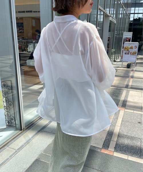 季節感のあるコーデに透けアイテムは欠かせない。オーバーサイズのラフさと、さっと羽織れる気軽さが魅力の涼しげシアーシャツ。肌見せで大人っぽい着こなしを楽しめるシアー生地をたっぷりと使いふんわりとしたシルエットに仕上げた女性らしいブラウス。袖のボリュームのあるシルエットが今年らしいデザインがポイント。■point・透け感のある涼しげな素材・たっぷりボリューム袖・身幅ゆったりなドレープ感■detail襟元はバンドカラーで引き締めてふんわりしたボリューム袖が女性らしさをUPしてくれる。気になる二の腕も華奢見えに。■fabricサラッとした着心地。透け感があり、シアーシャツ感覚で着用いただけます。……………………透け感:あり厚さ:薄い伸縮性:なし……………………※詳しいお手入れ方法は商品タグをご参照ください■coordinateカジュアル多めでも"肌見せ"意識で大人めに。女っぽブラウスは、ジーンズやスニーカーと合わせてカジュアルダウン◎トレンドのセンタープレスパンツでマニッシュにキメてもOK!普段の着こなしに合わせるるだけでグッと旬な洒落スタイルに早変わりです。Ambre CielAmbre Neige_から新ライン登場🕊"『 MY PLAYFULNESS!MY STYLE!』“今着たい” をベースに遊び心を兼ね備えた自由なclosetを提案致します♪※ご注意※・屋外の光や照明の当たり具合で、実際の商品の色味とカラー別画像の色味に若干の違いが発生する場合がございます。・詳細画像と併せてご確認の上、ご注文いただきますようお願い致します。※サイトに表示されているカラー名と実際のお届け商品に記載されているカラー名が異なる場合がございます。●お買い物をお得によりお楽しみいただく為に●▼商品のお気に入り登録&ブランドお気に入り登録▼ がおすすめです!♡をクリック完売カラーの再入荷通知や、ラスト1点の通知、プライスダウンしたセール通知も受け取ることができます。ブランドお気に入り登録もご一緒にお願い致します。