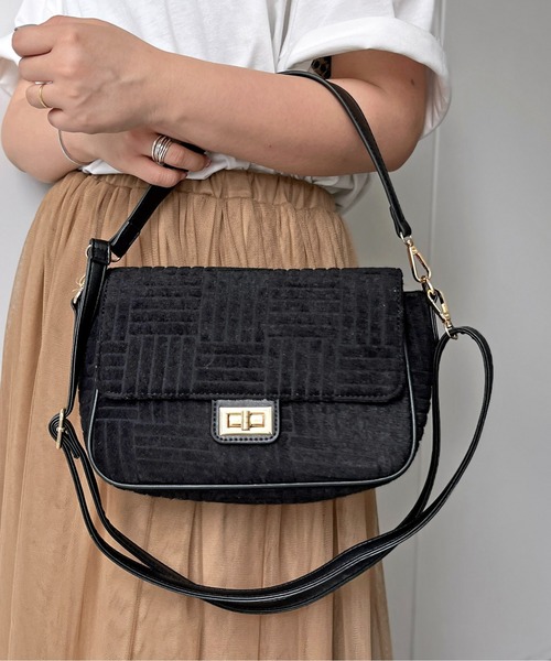 思わず触りたくなるパイル素材がポイント♪ 表面感のあるパイル素材で他にはないデザイン。 肩掛けや斜めがけ、手持ちにも使える2WAYショルダーでコーディネートに合わせてお使い頂けます♪ 【お買い物をよりお楽しみいただくために】 商品のお気に入り登録(ハートマークをクリック) 完売カラーの再入荷通知や、ラスト1点の通知、セールの通知も受けることができます。 ブランドのお気に入り登録 新商品や再入荷など、いち早くブランドのお得な情報を受け取ることができます。 ※屋外での撮影画像は、光の当たり具合で色味が異なって見える場合があります。商品の色味は、スタジオでの詳細画像をご参照ください。 ※画像の商品はサンプルです。 実際の商品と仕様、加工、サイズが若干異なる場合がございます。 ※ご注文いただいた予約商品のお届け時期の確認は、注文履歴ページより行えます。 ※実際にお届けする商品と仕様やサイズが異なる場合がございます。また生産の都合上、お届け時期が前後する場合がございます。