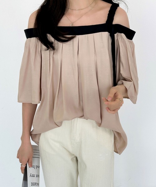 オフショルダーのヘルシーな肌見せが抜け感をプラスするブラウス。全体的にゆるっとしたサイジングでふんわりとしたニュアンスがかわいいアイテムです♪合わせるボトムを選ばずインでもアウトでも大人かわいく着こなすことができます。▼お気に入り登録のおすすめ【気になるアイテムを登録】ハートをクリックしてお気に入りに登録すると完売カラーの再入荷やラスト1点の通知、セールの通知を受けとることができます。【ブランドを登録】新商品や再入荷、セール通知など、いち早くブランドの情報を受けとることができます。是非ご利用頂き、お買い物をお楽しみ下さい。▼商品について・サイト上のカラー名と、お届け商品に記載されているカラー名が異なる場合がございます。・商品の色味は、撮影場所や光のあたり具合などにより色味が違って見える場合がございます 。また、お客様のお使いのPCのモニター環境などにより色味が違って見える場合がございます。予めご了承の上ご注文下さい。★詳細ディテールは、下記のライブ配信でリクエスト頂くことで御確認できます。tiktokアカウント①「abiを作った悪魔」最新情報をチェック!②「ENチャンネル」平日毎朝7時~9時LIVE配信でお得な情報をGET!