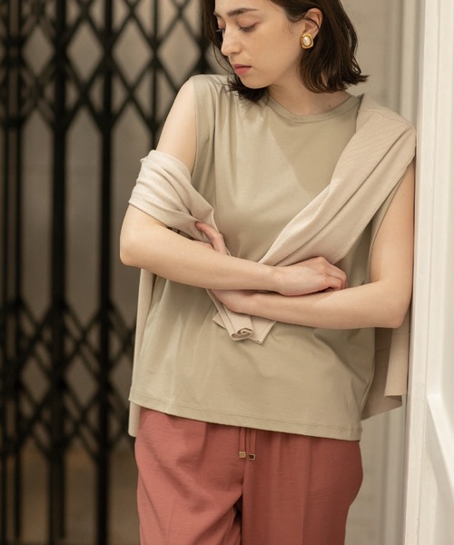 シルキーなタッチと、マルチな機能性が魅力の「SILKYSUPIMA/シルキースーピマ」カットソーシリーズカバー力の高さが魅力の、フレンチスリーブカットソー【デザイン】・リラクシーなシルエットにラウンドテールのデザインで、カバー力の高いデザインカットソー。・やや長めの着丈でお尻周りを自然にカバーし、ボトムにアウトでも着やすいバランスに。・自然に肩にかかるように計算したフレンチスリーブは二の腕をスッキリとカバー。・ベーシックながら一枚で存在感があり、アクセサリーなどをプラスしてスタイリングを楽しんでいただくのもおすすめです。【素材】・サスティナブルな「スーピマコットン」を100%使用したカットソー(スムース)素材・シルクのような光沢と滑らかさをもった「SILKYSUPIMA(シルキースーピマ)」を使用しています。・アメリカ産の超長綿である、希少なSUPIMA COTTON(スーピマコットン)を100%使用し、・さらにマーセライズド加工という特殊な加工を加えることで、より滑らかで美しい表面に仕上げたカットソー素材です。・スムース編みにすることで透け感を抑え、シワになりにくい機能性もうれしいポイントです。・接触冷感機能:着用した瞬間にひんやり感じる素材を使用しています。※ホワイト(002)は透け感があるため、インナーの着用をおすすめします。こちらの商品は主に夏に着用いただける商品です。モデル情報:身長168cm B76 W58 H86 着用サイズ:38(M)店舗へのお問い合わせ商品番号:637-16226●製品寸法:36(S):着丈61cm B111cm 肩幅40cm38(M):着丈62cm B114cm 肩幅41cm40(L):着丈64cm B117cm 肩幅42cm備考: