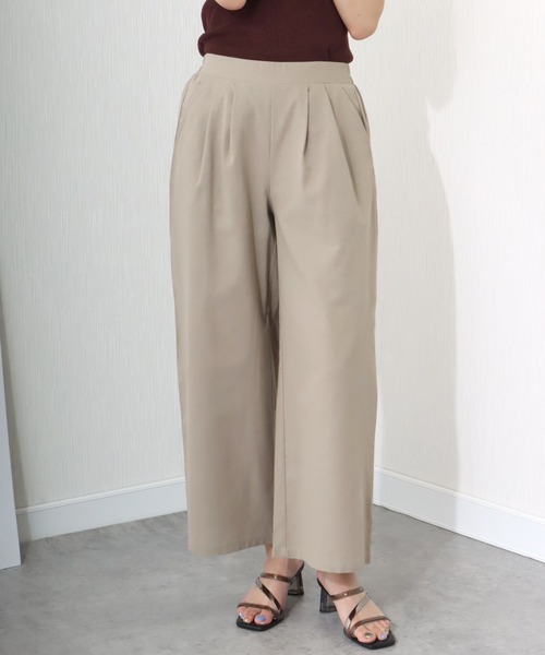 ナチュラルな風合いが魅力のリネンタッチ素材を使用。 夏にぴったりな薄手だから涼しく快適な着心地に◎ ■point ・リネンタッチの素材 ・後ろウエストゴム仕様で穿きやすさ抜群 ・ハイウエストとタック入りで脚長&美脚効果 ・レッグラインを拾いにくいシルエット ■detail レッグラインを拾いにくいシルエットになっており、 ハイウエストとタック入りで脚長&美脚効果が狙えます。 後ろウエストはゴム仕様でストレスなく着用していただけるのも嬉しいポイントです。 ■fabric ナチュラルで涼し気なリネンタッチの生地はレーヨン混で綺麗目見えする大人なファブリック。 膝上まである裏地付きなので透け感も気にせず着用して頂けます。 …………………… 透け感:なし 厚さ:やや薄い 裏 地:あり(膝上まで) 光沢感:なし 伸縮性:なし ポケット:あり2個 洗濯方法:洗濯機可 …………………… ※ネットに入れてのお洗濯をお勧めいたします。 ※詳しいお手入れ方法は商品タグをご参照ください。 ■coordinate シアー感のあるシャツにインナーでタンクトップやキャミソールを合わせ 抜け感のあるカジュアルスタイルに。 ボーダーTシャツに合わせればデイリーなラフなスタイルにもなります。 レース使いのトップスで綺麗目お出かけコーデにも。 合わせるアイテムを選ばず、いつものコーデをアップデートしてくれます◎ 《商品のお気に入り登録》 ・再入荷通知や、ラスト1点の通知、セール通知も受け取ることができます。 《ブランドのお気に入り登録》 ・新商品や再入荷など、お得な情報を受け取ることができます。 ※屋外の光や照明の当たり具合、パソコンなどの閲覧環境によって 実際の色味と異なって見える場合がございます。 予めご了承ください。 ※他のキャンペーンにより、期間中に価格が変動する場合があります。