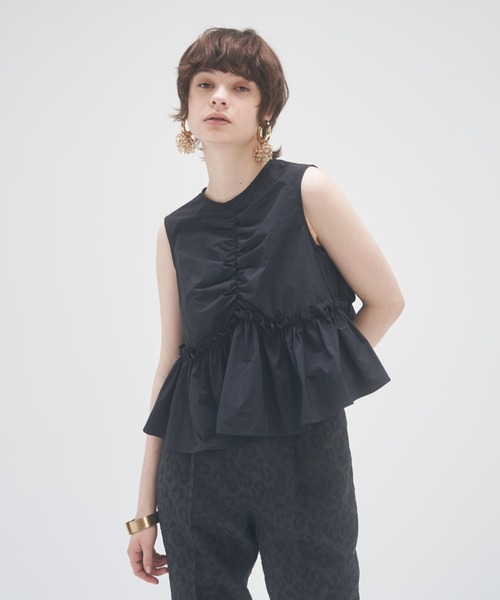 前後2way仕様のノースリーブブラウス プルオーバーとして、またジップを開け羽織りとして、全く異なるデザインのアイテムに仕上げました。 フリルのデザインがレディな印象を演出しながらも、リサイクルナイロンの素材感が甘さを中和。 撥水加工を施した程よく薄手で軽やかな生地感が着心地の良さを叶えます。 同素材のナイロンタフタドッキングニットワンピース(ブランド品番:2223230042-0)と合わせたスタイリングがお勧めです。 前後2Wayのデザインを生かして自分好みの何通りものスタイリングを楽しんで。 ーーーーーーーーーーーーーーーーーーー 【洗濯時の注意事項】 液温は40℃を限度とし、手洗いによる洗濯処理が可能です 漂白処理はできません タンブル乾燥は出来ません 底面温度110℃を限度とし、スチームなしでアイロン仕上げができます 石油系溶剤(蒸留温度150℃~210℃,引火点38℃~)での弱いドライクリーニング処理ができます 非常に弱い操作のウエットクリーニングができます 【付属品】 なし ーーーーーーーーーーーーーーーーーーー ▼商品のお気に入り登録 お気に入りアイテムの再入荷や残り1点の通知を受け取ることが出来ます ▼ブランドのお気に入り登録 新作アイテムの入荷や人気アイテムの再入荷、 タイムセールやクーポンなど、いち早くブランドのお得な情報を受け取ることができます ーーーーーーーーーーーーーーーーーーー ※外での撮影画像、お客様のお使いのモニター設定などにより、色味が違って見える場合があります。 商品の色味は、スタジオ撮影の画像をご参照ください。