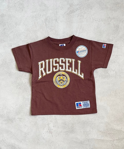 【RUSSELL ATHLETIC】 フロントのロゴが目を引くプリントTシャツ☆ 定番のロゴはもちろん、アーチロゴやキャラクターなど 楽しいフロントのプリントがコーデのポイントに。 袖口には、"R"のワッペン。 裾のロゴタグもアクセントになります。 カラーは8色展開です。 兄弟や姉妹でリンクコーデもオススメです。 RUSSELL ATHLETIC(ラッセルアスレティック) アメリカを代表する老舗アスレチックウェアブランド。 1902年にアラバマ州アレキサンダー・ シティにてベンジャミン・ラッセル氏によって創立されたブランド。 当初は女性下着や夏用ベストを生産していたが、1920年代よりスウェットウェアも手がけるようになる。 1938年にはフットボール・野球・バスケットボールのスポーツユニフォームの生産を開始 1983年時点ではナショナルフットボールリーグ(NFL)28チーム中の24チームにユニフォームや練習着を提供していた 現在はメジャーリーグベースボール(MLB)の公式サプライヤーであり、MLBの15チームをはじめリトルリーグなど全米の数々のスポーツチームにユニフォームを供給している。