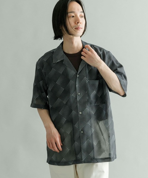 メッシュの透け感とトーンONトーンのテキスタイルがモダンなオープンカラーシャツ エアリーでトレンド性のあるメッシュ素材を使用したリラクシィなオープンカラーシャツ。通気性、速乾性にも優れ、落ち着いたプリントがファッショナブルな機能面、デザイン性を兼備したまさに二刀流な1着に仕上がりました。透け感を上手く見せるインナー使いも楽しめる旬なアイテムです。 【2023 Spring/Summer】 ※商品画像は、光の当たり具合やパソコンなどの閲覧環境により、実際の色味と異なって見える場合がございます。予めご了承ください。 ※商品の色味の目安は、商品単体の画像をご参照ください。 ▼お気に入り登録のおすすめ▼ お気に入り登録商品は、マイページにて現在の価格情報や在庫状況の確認が可能です。 お買い物リストの管理に是非ご利用下さい。 ----------------------------- 透け感:ややあり 伸縮性:なし 裏地:なし 光沢:なし ポケット:あり -----------------------------