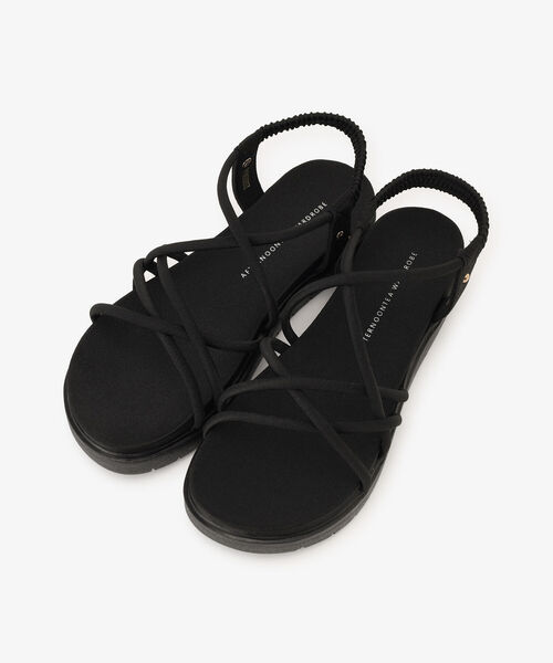 アフタヌーンティーから初登場したオリジナルのスポーツサンダルです。 クッション性を持たせた細い紐を使用し、ソフトな足あたりにこだわりました。かかと部分はゴム仕様にして、歩いているときに痛くならないように工夫しています。華奢なストラップとやや厚底のヒールで足元だけでも上品な雰囲気が漂うデザイン。涼しく過ごしながら、おしゃれなスタイリングまで楽しめる万能さが魅力的です。お洋服のデザインを問わず合わせやすいブラックでご用意しているので、ぜひ普段使いのサンダルに加えてくださいね。お気に入りのネイルを見せる楽しみも増えそうです。 *サイズ/(M)23.5~24.0cm、(L)24.0~24.5cm