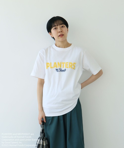 アメリカNo.1のナッツブランド【PLANTERS】のプリントTシャツ。 フロントにはブランドのロゴ、バックにはチーズボール缶をプリントし、ベーシックなボディーカラーにパキッとしたキャッチーなカラーが映える一枚です。 少し詰まった衿元に、1枚でも着やすい程よくゆとりのあるサイズ感。 カーディガンやシャツのインナーとして、ロゴをのぞかせてポイント使いとしても活躍します。 【PLANTERS】 1906年にアメリカのペンシルベニアで設立されたナッツブランド。 洗濯方法:ネットに入れて洗濯機使用可 ※取り扱いの注意については取り扱い表示をよくご確認の上、着用をお願い致します。 ※着古した風合いになるように特殊なプリント加工を施しておりますので、1枚1枚異なった風合いをお楽しみいただけます。なお摩擦などで脱落したり、着用や洗濯などで薄くなる場合がありますのでご注意下さい。 ●白・淡色のものは無蛍光洗剤をご使用ください。濃色と白・淡色のものは分けて洗ってください。 ●アイロンの際はあて布をご使用ください。プリント部分のアイロンはお避けください。 ●プリントは永久的なものでなく、着用や洗濯を繰り返すことにより、ひび割れや脱落することがあります。 ●湿った状態や着用中の摩擦により他の物に移染する恐れがあります。 ●着用中の摩擦や洗濯により、毛羽立ちやピル(毛玉)が生じる事がありますので、お取り扱いにご注意ください。 ※撮影画像は、光の当たり具合やモニターの環境により色味が違って見える場合があります。あらかじめご了承ください。 ※着用画像はサンプルです。お届けする実際の商品と仕様、加工、サイズが若干異なる場合がございます。