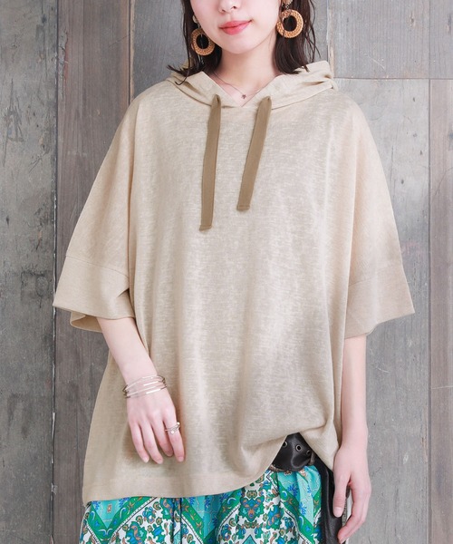 ゆるっとこなれる、スラブ生地の半袖パーカー。 涼し気でさらっと透け感のあるスラブカットソー生地を使用。 通気性が良く、軽やかで心地良い肌触り。 配色フードは紐はねじれを防ぐため、ステッチでおさえた飾り仕様。 あえて左右で長さを変えて固定することでニュアンスもプラス。 サイドスリットと前後で着丈差をつけたデザインです。 着心地もお洒落もこの一着に、≪n'OrLABEL≫風合いスラブ半袖パーカーです。 こちらの商品は着用中の摩擦や洗濯によりピリングが生じる場合がございます。 素材の特性上、完全に防止することはできません。 ピリングができましたら、引っ張ろうとせずハサミや毛玉取り器で丁寧に取り除いてください。
