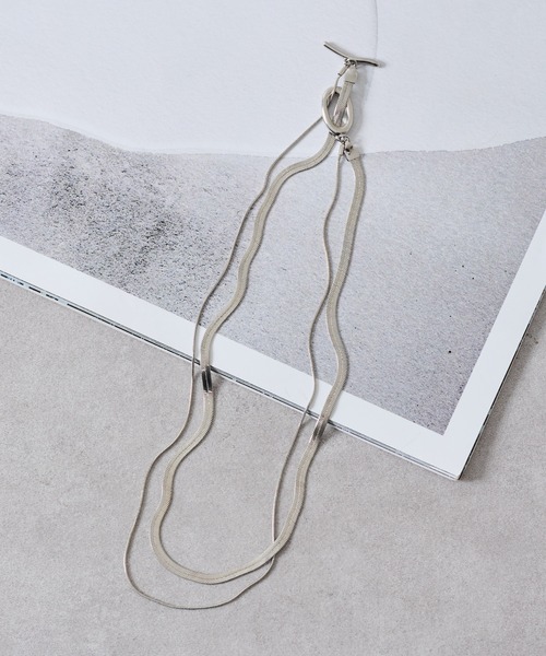 【人気の2連スネークチェーンネックレス】 人気のスネークチェーンを使用した2連ネックレスにTバーでニュアンス感をプラス。 長さの異なる2本のスネークチェーンは存在感抜群なので、コーディネートにプラスするだけでオシャレをワンランクアップ。 デイリーに身に付けられ、きれいめ系、カジュアル系、韓国系、様々なファッションジャンルに相性抜群です 【商品ポイント】 ・人気の2連仕様でTバーでニュアンス感をプラス ・スネークチェーンでどんなコーディネートとも相性抜群 ・シンプルなので重ね付けにもピッタリ ---------------------------------------------------- ■素材 真鍮, 合金 ---------------------------------------------------- ※着用、お取り扱いの際は、商品についている品質表示とアテンションタグを必ずご確認下さい。 ※商品タグに記載されている商品名がWEBでの表記名と異なる場合があります。 ※画像の商品はサンプルです。実際の商品と仕様、加工、サイズが若干異なる場合がございます。 ※照明の関係により、実際よりもやや明るく見える場合がございます。またパソコンなどの環境により、若干製品と画像のカラーが異なる場合もございます。予めご了承くださいませ。 【お気に入り登録】してお得な情報をCHECK!! ・「商品のお気に入り登録」で再入荷通知や、ラストの通知、セール通知も受け取ることができます。 ・「ブランドのお気に入り登録」で新商品や再入荷など、お得な情報を受け取ることができます。