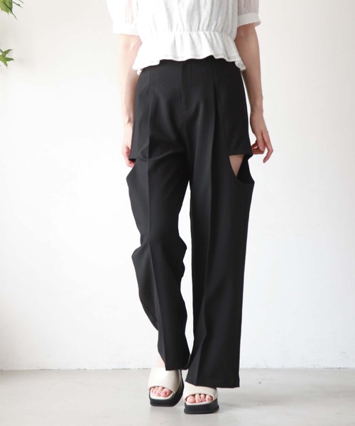■パンツでヘルシーな肌見せを■新色の”beige”が追加で登場! サイドのカットアウトデザインが特徴のパンツは履くだけでトレンド感アップ。ヘルシーな肌見せが叶います。合わせやすいストレートシルエット。センタープレスが入っているのでカジュアルすぎず、キレイめなスタイリングもしていただけます。股上も深めなので脚長効果も抜群です。フロントに入ったタックで太ももの張りをカバー。体のラインを拾いにくいゆったりとしたサイズ感です。ーーーーーーーーーーーーーーー透け感:なし裏地:あり伸縮性:なし光沢感:微光沢生地厚さ:普通洗濯方法:手洗い可※詳しいお手入れ方法は商品についているタグをご覧くださいーーーーーーーーーーーーーーー※ご利用のモニター環境により、実際の色味と多少異なる場合がございます。… information … 欲しいitemをお気に入り登録(♡マークをclick) ・お買いのがし対策…完売itemの再入荷やラスト1点の情報をお知らせ ・欲しいitemをお得にget…price downになったらいち早くお知らせ ・スムーズ検索…ZOZOのお気に入りアイテムページで簡単checkできるから、再検索不要♪