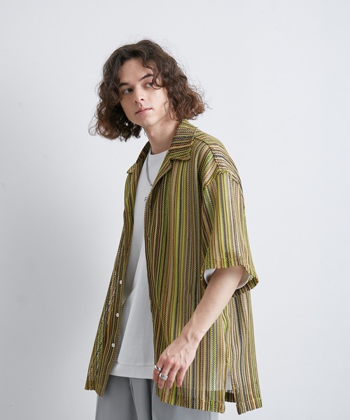 【 UNISEX 】透かし編みストライプ柄シャツ ■素材、機能透かしのマルチストライプカラーでインパクトがありサラリとしたタッチなので真夏でも快適な素材感です。汗を書いてもベタベタ感は全く無く気持ちよく着用できる肌に優しい素材です。透けた素材ですがマルチカラーなので嫌な透け感がないのでデイリーに使えます。■シルエット、デザイン馴染んだカラーリングのマルチストライプコーデのアクセントカラーにもしやすいルーズシャツです。ドロップショルダー、ワイドスリーブでルーズなサイズ感でトレンドライクなシルエットに仕上げています。透けが気にならないカラーリングなので男女問わず着用しやすいシャツです。■カラーシンプルな配色に抑えた3色展開です。■スタイリングシンプルなインナーとワイドスラックスに合わせたモードなコーデがおおすすめです。またカラーを合わせたデニムとの合わせやイージーパンツを合わせたラフな着こなしも今っぽく決まります。裏地:なし透け感:あり伸縮性:あり生地感・厚さ:普通ポケット:なしその他仕様:なし【モデル着用サイズ】MEN:身長175cm 着用サイズLWOMEN:身長172cm 着用サイズL※撮影場所やライティング、お使いのモニター環境によって色の見え方が異なる場合がございます。※商品のカラーは詳細画像の色味をご参照ください。