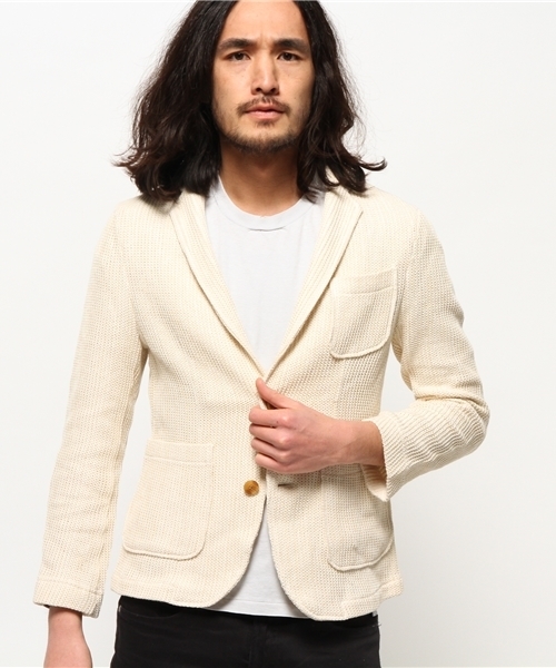 ◆2015年春夏アイテムが登場◆SHIPSオリジナルのジャケット程良いリラックス感がポイントの、ラッセルコード素材で仕上げた2ボタンジャケットです。今季は別注のリネン混素材を使用し、天然素材ならではのさらりとした着心地が特徴。生地がニットのように柔らかく表面感がある素材感に仕上げ、カーディガンジャケットとして最適な生地感を追求しました。シルエットは着用時のスッキリとしたシャープなパターンを表現し、ウエストドロップを絞った上品なデザインながら、従来のカットソーアウターの硬い質感とは対象的に柔らかなため、非常に着心地に優れています。 エルボー部分のパッチ風ステッチワークや、パッチポケット等のデザインもポイントで、カジュアルはもちろんネクタイなどを合わせたキレイめスタイルにも対応可能なカットジャケットに仕上がっています。SHIPS各店へは下記品番にてお問合せください。型番:112-30-0017