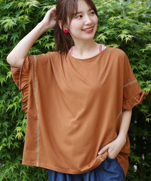 シンプルだけど存在感を放つ袖口フリルポンチョ■デザイン落ち着きカラーで大人っぽく仕上がるポンチョ型トップス。袖口のフリルがエレガントさをプラスしてくれます。斜めに入ったハシゴレースは、カラーを変えてスッキリ見えを叶えます。身体のラインを拾いにくいシルエットも嬉しいポイント。■サイズ感レディースフリーサイズゆったりとした身幅でノンストレスな着心地。■素材感柔らかな綿100%素材を使用しています。■スタイリングデニムパンツやスキニーパンツなどスッキリとしたボトムスと合わせて、大人カジュアルに。フレアスカートと合わせても、大人っぽい上品なスタイリングに仕上がります。■カラーベージュ/ブラウン/ネイビー---------------------------------透け感:やや透ける(ベージュのみ)伸縮性:あり裏地 :なし光沢 :なし生地の厚さ:薄手ポケット:なし---------------------------------【TITICACAのお買いものをお楽しみいただくために!】▼商品のお気に入り登録完売カラーの再入荷通知や、ラスト1点の通知、セールの通知も受け取ることができます。▼ブランドのお気に入り登録新商品や再入荷など、いち早くブランドのお得な情報を受けることができます!