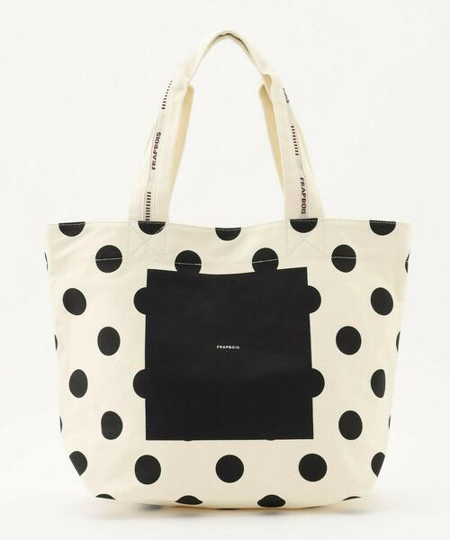 【素材】 しっかりとした厚みの綿キャンバス素材のトートバッグ。 【デザイン】 大人気「テイストート」のドットデザインの登場です。 マチ付きのしっかりとした内容量が入るサイズに、バッグ口にマグネットホックを新たに付け、より進化しました。 持ち手は、フラボアのオリジナルドビーテープを使用しています。 【ブランド情報】 FRAPBOIS PARK/フラボア パーク <いろいろな人が集まるところ> はじめましてやそうじゃない人にも いろいろなスタイルに いろいろとプラスできる いろいろなアイテムをそろえました。 この[PARK(パーク)]レーベルは JOIN/ジョインをキーワードに、 いろいろなクリエイターやアーティスト、 今、気になるモノ・コトなどを取り入れて アイテムを製作していきます。 ジェンダーや年齢をこえた いろいろな人たちにお楽しみいただけるよう、 スタンダードなアイテムを中心に サイズ展開の幅を広げています。 ---------------------------------------------------------------------- 【お気に入り登録】がおすすめです。 ■商品のお気に入り登録 再入荷、残り1点、セールなどの通知を受け取ることができます。 →商品ページ ♡ をクリック ■ショップのお気に入り登録 新商品や再入荷、セール、クーポン配布、ショップニュースなど、いち早くショップの情報を受け取ることができます。 →「♡お気に入りショップに追加」 をクリック ----------------------------------------------------------------------