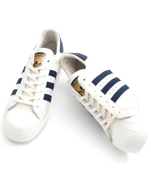 ☆☆adidas Super Star 80s Vintage Deluxe <WEB限定>NAVYカラー販売スタート☆☆ Super Star 80sVintage Deluxeはオリジナルのオールホワイトのアッパーにあしらったスリートストライプスとヒールタブのスタイルを復活させました。上質なレザーに滑らかなヌバックのストライプスをあしらい、更なる履き心地を求め、高機能ウレタンフォームを採用したソックスライナーを備えています。アイコニックなゴールドのタンラベルがポイントになっています。 お問い合わせの際は、全国のOdette e Odile店舗まで下記の品番をお申し付けください。 品番:45594990241