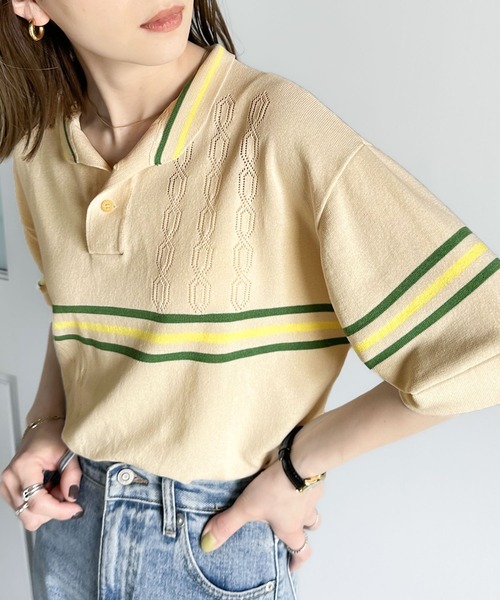 プラスワンでスタイリングの鮮度が高まる! レトロな配色ボーダーが目を惹くニットポロシャツ。 《メンズもお揃いで着れちゃうボーダーニットトップス。》 クラシカルエルフでしか買えない、JaVa別注アイテム。 クラシックでヴィンテージライクなマルチボーダーは コーディネートのアクセントになること間違いなしの着映えアイテム。 ■point ・ヴィンテージライク ・微光沢でこなれ感 ・スポーティ ・レトロ配色 ■detail 古着からインスピレーションを得たヴィンテージライクな1枚。 スポーティーなラインと女性らしい生地感がこなれ感を演出◎ レトロな配色のマルチボーダーがシンプルコーデを今っぽく格上げします。 デニムと合わせてボーイッシュなスタイルや流行の分量感のあるスカートとの相性もバッチリ。 シーズンムード溢れる涼し気なルックスは、程よくラフなシルエットも相まって、 スタイリングに抜け感を与えてくれます。 ウエストにインしてもアウトでもバランスが取りやすく、様々なボトムと好相性です。 大人カジュアルなお洒落を楽しめるユニセックスな1着です。 ■fabric 微光沢でヴィンテージ感のある糸 …………………… 透け感:なし 厚さ:普通 伸縮性:あり ポケット:なし 洗濯方法:手洗い可(ネット使用) …………………… ※詳しいお手入れ方法は商品タグをご参照ください。※ネットに入れてのお洗濯をお勧めいたします。 ■coordinate ベーシックなデニムはもちろんフレアパンツやスラックスパンツでキレイめに決めてもよし、ワイドパンツと合わせたゆるっとスタイルもオススメ。 シンプルなフレアスカートを合わせれば、大人っぽく仕上がります。 配色ラインがアクセントになっているので、シンプルなコーデに合わせるだけで、 今年らしいトレンドスタイルに仕上がります。 ユニセックス(男女兼用)タイプだから、お揃いコーデできちゃうのもうれしい。 【Java Brand Story】 ~Enjoy the moment~ Java/ジャバはインドネシアのジャワ島の海の美しさにインスパイアされ誕生したフットウェアブランドです。 スポーツ、アドベンチャー、アウトドア、フェス、タウンユースなど あらゆるシーンを想定し、歩きやすさ、快適さにこだわった機能性と 高いファッション性が特徴。年齢や性別を超えたユニバーサルデザインも魅力のひとつです。 手つかずの大自然や海を愛し、人生のアドベンチャーを楽しむすべての人に。 ご覧のモニター環境により、画像の色味と多少異なる場合がございます。 ★《お気に入り登録》でお得な情報がいっぱい★ ・「商品のお気に入り登録」で再入荷通知や、ラストの通知、セール通知も受け取ることができます。 ・「ブランドのお気に入り登録」で新商品や再入荷など、お得な情報を受け取ることができます!