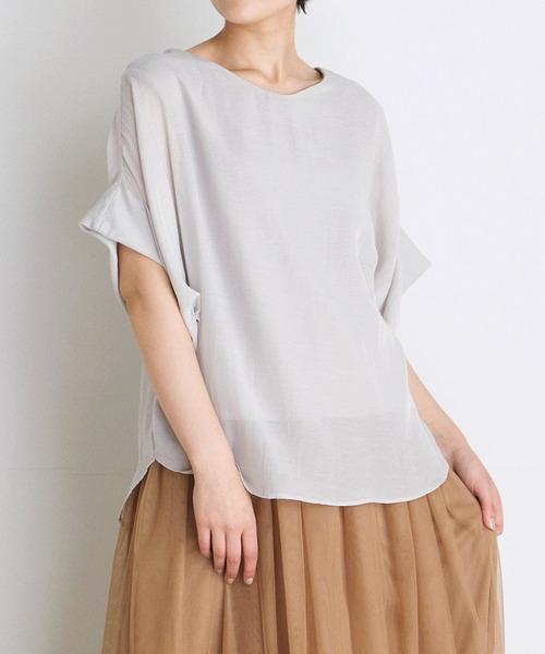 昨年も人気だったボートネックブラウス。軽くドレープ性のあるポリエステルローン素材を使用。裏地付きなので重ね着する必要が無く、これからの時期に涼しく着用いただけます。デコルテをキレイに見せてくれるボートネックで大きくラウンドさせた裾と袖口のデザインがポイントです。 透け感:ややあり 伸縮性:なし 裏地:あり 光沢:なし ポケット:なし 洗濯方法:水洗い可■サンプル撮影商品■こちらの商品はサンプルでの撮影となっております。実際の商品とは、サイズや色味、素材、デザイン等の仕様が若干変更になる場合がございます。