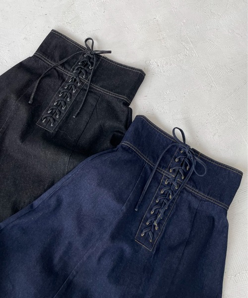 マルチに使えるデニムロングスカート ウエストに施したレースアップがポイントのデニムスカートは反対がジップになっており、 着用しやすいのはもちろんのこと、前後どちらをフロントにしても可愛いデザインに仕上げました。 また、レースアップをほどき、ウエストを折り返すことでまた違った印象でお楽しみいただけます。 しっかりと長めの丈感を採用することで、大人っぽくコーディネートに取り入れていただけます。 デニム素材なので時期にとらわれず、ロングシーズンでお楽しみいただけます。 使いやすいブラック・ネイビーの2色展開です。 ・この製品は生地の風合いを出すための特殊な加工をしている為、生産の過程で色・素材・サイズ感など多少異なる場合がございます。 ・デニムの特性上、染料の特有のニオイがあります。また人によっては染料のニオイが多少強く感じられる場合がございます。 ・雨や汗などの湿気の多い状態や洗濯・クリーニングにより他の衣類、家具等に色落ちする恐れがございますのでご注意ください。 ・新品のまま保管していても、年月の経過と共に、湿気や紫外線、熱や汚れなどにより、劣化する場合がございます。 ・家庭洗濯時の乾燥機の使用は避け、風通しの良い所で十分乾燥させた後、保管して下さい。 ・お取り扱いにより劣化が促進される場合がありますのでご注意下さい。 ※照明や天候、閲覧環境によって実際の色味と異なって見える場合がございます。予めご了承ください。 商品到着後、着用前に商品を確認して頂きますようお願い致します。 上記のご理解をいただいた上でご購入いただきますようお願い致します。 … information … 欲しいitemをお気に入り登録(♡マークをclick) ・お買いのがし対策…完売itemの再入荷やラスト1点の情報をお知らせ ・欲しいitemをお得にget…price downになったらいち早くお知らせ ・スムーズ検索…ZOZOのお気に入りアイテムページで簡単checkできるから、再検索不要♪