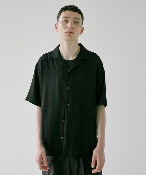 〈素材〉 ・上質なジョーゼット素材を採用。 ・軽くしなやかなストレッチ性のある着心地の良い一着。 ・透け感:なし ・裏地:なし ・伸縮性:あり 〈デザイン〉 ・ゆったりとしたリラックスフィット ・爽やかなオープンカラー仕様。。 ・裾側2つのボタンをループ仕様にしデザインのアクセントに。 ・バックにはタックを入れ、ドレープと快適な着心地を生み出します。