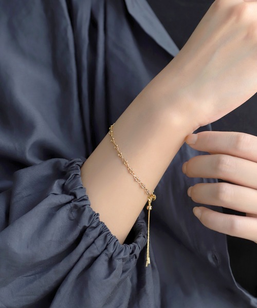 ループタイのようなデザインが、手元をこなれた雰囲気に導くネックレス。 チェーンが繊細な煌めきを放ち、シンプルなコーデのアクセントになってくれます。 単品使いはもちろん、重ね付けをしてボリュームを出すのもオススメ♪ ※ATTENTION※ ■製造・輸送時についた微細なキズが見られる場合がございます。 上記は不良の対象外となりますので、予めご了承くださいませ。 ■引っかかりなどによる破損にご注意ください。