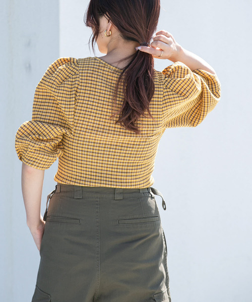 【華やかさをプラスしてくれる着映えトップス】ギンガムチェック柄の伸縮性のあるシャーリング生地を採用した着映えトップス。身頃はコンパクトながらも、長めに設定された袖はしっかりとボリュームが出るようなデザインに。甘過ぎず大人の方でも挑戦しやすいカラー展開です。POINT・華やかをプラスするギンガムチェック柄・二の腕カバーが叶う長めに設定された袖・ボトムを選ばないコンパクトなサイジングCOORDINATEメンズライクなパンツでカジュアルダウンしたスタイリングを楽しむのはもちろん、キャミワンピやスカートを合わせると、よりフェミニンムードを高めてくれます。【2023 Spring/Summer】※商品画像は、光の当たり具合やパソコンなどの閲覧環境により、実際の色味と異なって見える場合がございます。予めご了承ください。※商品の色味の目安は、商品単体の画像をご参照ください。▼お気に入り登録のおすすめ▼お気に入り登録商品は、マイページにて現在の価格情報や在庫状況の確認が可能です。お買い物リストの管理に是非ご利用下さい。-----------------------------透け感:なし伸縮性:なし裏地:なし光沢:なしポケット:なし-----------------------------