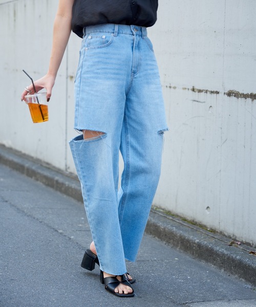 【柔らかい11OZデニムを使用したダメージデニムパンツ】 シルエットはやわらかく、クラシカルな雰囲気のある1枚。 太もも部分にカットしたダメージデザインがアクセントに。 程よくルーズなシルエットがリラックス感ある印象にしてくれます。 【商品ポイント】 ・11OZデニムを使用 ・トレンドのダメージデザイン ・腰の位置が高見えするハイウエストパンツ ・程よくルーズなワイドシルエット ---------------------------------------------------- ■商品特徴 洗濯方法:手洗い可 裏地 :なし 透け感 :なし 伸縮性 :なし 光沢感 :なし 生地の厚さ:普通 ---------------------------------------------------- ■素材 綿100% ---------------------------------------------------- ※着用、お取り扱いの際は、商品についている品質表示とアテンションタグを必ずご確認下さい。 ※商品タグに記載されている商品名がWEBでの表記名と異なる場合があります。 ※実際の商品と仕様、加工、サイズが若干異なる場合がございます。 ※照明の関係により、実際よりもやや明るく見える場合がございます。 またパソコンなどの環境により、若干製品と画像のカラーが異なる場合もございます。予めご了承くださいませ。 【お気に入り登録】してお得な情報をCHECK!! ・「商品のお気に入り登録」で再入荷通知や、ラストの通知、セール通知も受け取ることができます。 ・「ブランドのお気に入り登録」で新商品や再入荷など、お得な情報を受け取ることができます。