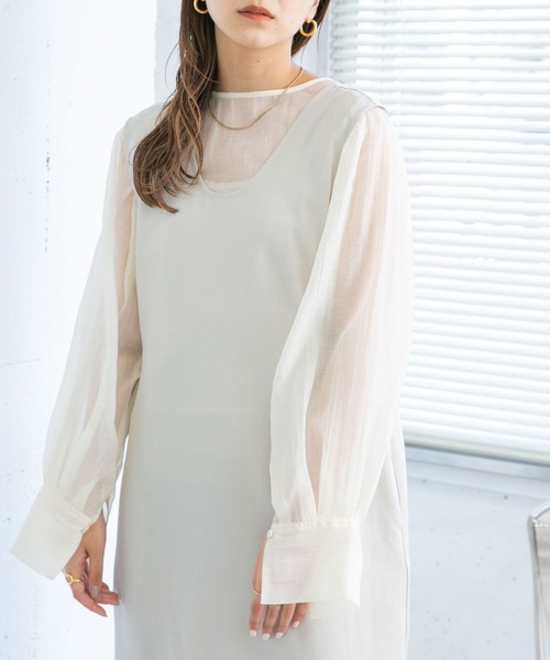 【ボリュームスリーブが女性らしい前後2WAYブラウス】 コンパクトな着丈とボリュームスリーブが魅力のブラウス。雰囲気を変えることができる前後2WAY仕様や、夏に嬉しい透け感のある素材がポイント。冷房や日除け対策にも最適なアイテムです。 POINT ・女性らしいボリュームスリーブ ・雰囲気が変わる前後2WAY仕様 ・夏に嬉しいシアー素材 COORDINATE デニムやカーゴパンツと合わせれば、きれいめな大人カジュアルコーデが完成。また、キャミワンピースのインナーに入れていただくと華やかさをプラスします。 【2023 Spring/Summer】 ※この商品は、激しい運動や強い力がかかると、滑脱(縫い目が滑って開いたり、縫いしろが抜ける)したり目寄れ(織り糸が滑って片寄り、折り目が開く)することがあります。ご着用の際はご注意ください。 ※長時間日光や照明を受けると、変色する恐れがあります。着用や保管の際は充分にご注意下さい。汗や雨などに濡れた状態で、長時間日光にあたると変色することがありますのでご注意ください。 ※デザイン上、モノフィラメント糸を使用しています。糸の特性上、ざらざらした肌触りがあり、肌に直接触れますと赤くなり場合があります。特に肌が弱い方や汗をかきますと顕緒になります。直接肌には着用せず、下に一枚着用することをお勧めいたします。着用して異常を感じた場合は直ちに着用をお避けください。 ※商品画像は、光の当たり具合やパソコンなどの閲覧環境により、実際の色味と異なって見える場合がございます。予めご了承ください。 ※商品の色味の目安は、商品単体の画像をご参照ください。 ▼お気に入り登録のおすすめ▼ お気に入り登録商品は、マイページにて現在の価格情報や在庫状況の確認が可能です。 お買い物リストの管理に是非ご利用下さい。 ----------------------------- 透け感:あり 伸縮性:なし 裏地:なし 光沢:なし ポケット:なし -----------------------------