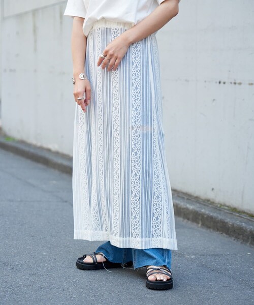 【着回し豊富な2WAYレーススカート】Iラインスカートとしてはもちろん、ペチコートを外してレーススカートをレイヤードするスタイルも楽しめる1枚。スッキリとしたIラインシルエットで、花柄のレースが上品印象に◎いつものカジュアルコーデにプラスするだけでワンランク上のスタイリングに。【商品ポイント】・レイヤードスタイルと、Iラインスカートの2WAY使用・旬なスタイリングが叶うレーススカート・ペチコートはスリット入りで取り外しも可能◎・ウエストはオールゴムでリラクシーな穿き心地【オススメのスタイリングアイテム】CWA1031306A0023 20/USA天竺プリントルーズTシャツCWA1031103A0001 ダメージデニムパンツ----------------------------------------------------■商品特徴洗濯方法:手洗い可裏地:あり透け感:ややあり伸縮性:あり光沢感:なし生地の厚さ:薄い----------------------------------------------------■素材本体:ナイロン60%, 綿40% ペチコート:ポリエステル100%----------------------------------------------------■サイズ本体:ウエスト68~98cm, ヒップ98cm, スカート丈87㎝ペチコート:ウエスト64~98cm, スカート丈77㎝----------------------------------------------------※着用、お取り扱いの際は、商品についている品質表示とアテンションタグを必ずご確認下さい。※商品タグに記載されている商品名がWEBでの表記名と異なる場合があります。※実際の商品と仕様、加工、サイズが若干異なる場合がございます。※照明の関係により、実際よりもやや明るく見える場合がございます。またパソコンなどの環境により、若干製品と画像のカラーが異なる場合もございます。予めご了承くださいませ。【お気に入り登録】してお得な情報をCHECK!!・「商品のお気に入り登録」で再入荷通知や、ラストの通知、セール通知も受け取ることができます。・「ブランドのお気に入り登録」で新商品や再入荷など、お得な情報を受け取ることができます。
