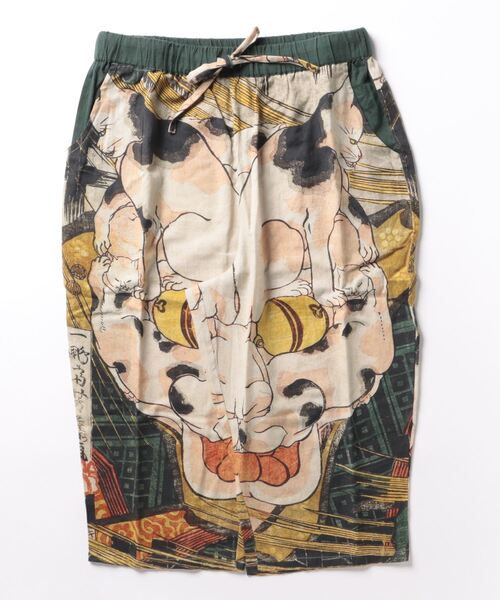 浮世絵の鮮やかさをデジタルプリントで現代風に表現した粋なステテコ。 心地良い肌ざわりの綿素材で、涼やかに穿けるメンズハーフパンツ。 大胆な柄のお洒落さと穿きやすさを兼ね備え、普段着としてはもちろん、部屋着などのリラックスウェアとしてもご着用いただけます。 男女問わずユニセックスで着用可能です。 ・ウエストゴム 紐仕様 MAX~108cm ・両サイドポケット付き。 ・右バックポケット付き。 ●ホワイト → 長沢芦雪《白象黒牛図屏風》子犬(芦雪犬)と円山応挙《狗子図》 ●ブラック → 歌川国芳《相馬の古内裏 がしゃ髑髏》 ●ダークグレー → 歌川芳艶《破奇術頼光袴垂為搦》 ●ベージュ → 歌川国利《志んぱんねこ尽》 ●ダークベージュ → 歌川芳藤《五拾三次之内猫之怪》 ●ネイビー → 歌川国芳《宮本武蔵の鯨退治》 ●ブルー → 歌川国芳《金魚づくし》 ●ダークネイビー → 俵屋宗達《風神雷神図》 ●レッド → 歌川国政《市川鰕蔵の暫》 ◆カヤ◆ 古くから伝わる日本の伝統と新しい文化の融合。 「新しいカタチの日本」に出会える倭物ブランド【カヤ】 「文明開化」をテーマに、倭モダンで色彩あふれる刺激的な和雑貨を提案していきます。 ※こちらの商品は1点1点職人による手作りとなります。その為、生地の取り方により柄の配置や形・色合いなど若干異なる場合がございます。(画像は一例です。)あらかじめご了承ください。 <価格改定のお知らせ> 2024年4月9日より、素材費高騰の諸事情により価格改定をさせて頂きます。 商品タグに記載している価格につきまして、旧価格のものが混在している場合がございます。 ご了承くださいますよう、お願い申し上げます。 Amina Collection Co.,LTD.