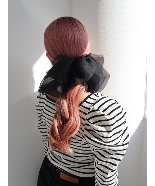 大胆に大きなリボンで ガーリーな気分を盛り上げてくれるアイテム♡ 透け感のあるシアー素材を たっぷりと使用した贅沢なリボンモチーフ。 ハーフアップにぱちっと付けたり ポニーテールに付けるだけで ぐっとお洒落なヘアアレンジの完成です♪ [ select item ] JUMELLEらしい、ガーリーカジュアルなスタイルに ぴったりなアイテムを厳選してセレクト。 つけ心地やシルエットまでcheckし、セレクトしています。