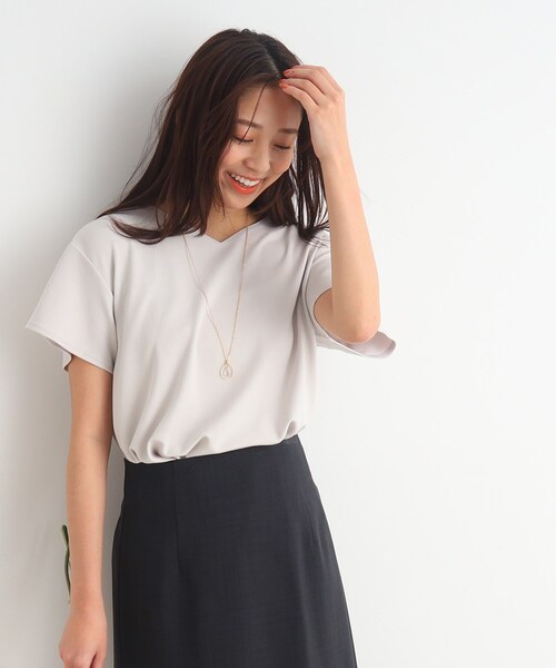 アクセサリーがセットになった上品トップス!【デザイン】涼やかなフレアスリーブが夏に嬉しいトップスです。Vネックデザインで、すっきりと大人っぽい印象で着ていただけます。裾はラウンドカットなので、インでもアウトでもサマになります。インパクトのあるアクセサリー付きも嬉しいポイントです。【スタイリング】首元の開きが気になる方におすすめの浅めのVネックデザイン。上品な雰囲気があるので、きれい目なテーパードパンツやタイト目なスカートと合わせていただくと、きちんと感もあり好印象◎デニムやジャンスカなどと合わせたカジュアルコーデはもちろん、フレアスカートやキャミワンピースと合わせて大人フェミニンにもマッチします。セットのネックレスはお手持ちのお洋服に合わせてコーディネートを楽しんでいただけます。【素材】シワになりにくく乾きやすい、涼し気なカットジョーゼット素材。モデル情報:身長166cm 着用サイズ:02(M)店舗へのお問い合わせ商品番号:741-16348●製品寸法:02(M):着丈65cm B102cm 袖丈13cm 肩幅47cm 付属ネックレス全長70.5cm 付属ネックレスモチーフH2.4cm 付属ネックレスモチーフW1.8cm03(L):着丈66cm B108cm 袖丈14cm 肩幅47cm 付属ネックレス全長70.5cm 付属ネックレスモチーフH2.4cm 付属ネックレスモチーフW1.8cm04(LL):着丈67cm B114cm 袖丈15cm 肩幅48cm 付属ネックレス全長70.5cm 付属ネックレスモチーフH2.4cm 付属ネックレスモチーフW1.8cm備考: