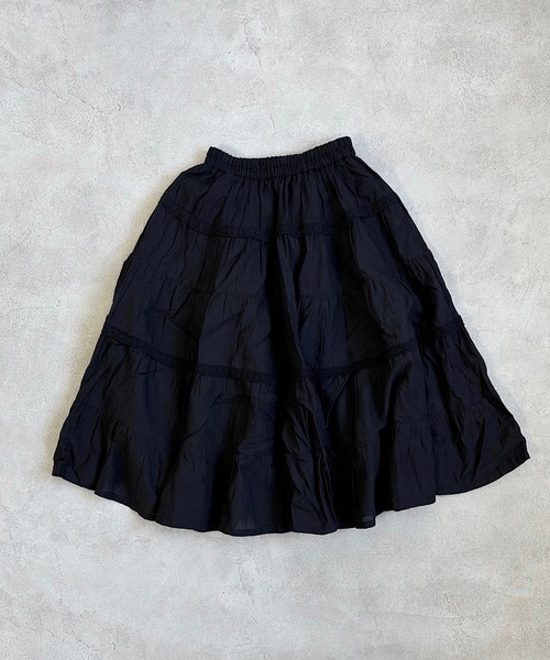 【A BOND】 ふんわりやわらかいロングスカート♪ 薄手の柔らかなインド綿を使用しているので ふんわりした手触りで軽いタッチの風合い。 シンプルなデザインに レースのアクセントをプラス+ ふわふわ動きのあるスカートなので ガーリーコーデにピッタリ♪ 大人サイズもございますので、 親子でリンクコーデもとっても可愛いです。 ◆両サイドにポケット付き ■親子でリンクコーデもオススメです。 ・大人サイズ:0030831009 ■モデル着用アイテム ・太ボーダーTシャツ:0000331177