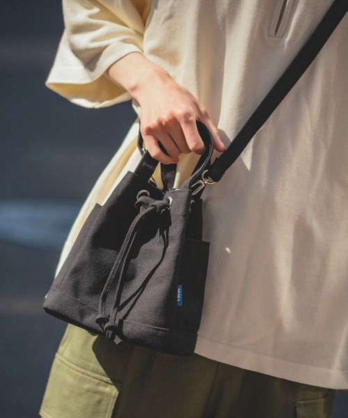 ミニマルなデザインで、ちょうどいい大きさの巾着バッグをご紹介。●しっかりとした手持ち感のあるキャンバス生地を採用●携帯電話や財布入れにぴったりなサイズ感●どんなコーデにも使いやすいブラックシンプルなデザインでカジュアル、ストリート、韓国ファッションとどんなコーデにも取り入れやすい鞄。男性にはもちろん、メンズライクな女性にも使って仕上がりになりました。