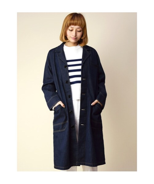 軽いかためのデニム生地を使用したチェスターコート。すっきりとしたシルエットにロング丈の仕上がりが魅力なので、カジュアルから様々なスタイリングにご使用頂けるアイテムです。ロング丈のアウターはハンサムな印象なのでタイトスカートなどの女子アイテムとのコーデもオススメです。パンツとすっきりまとめたコーデも◎。綿素材の通気性のよい商品なので長い期間お使いいただけます。