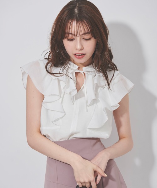 ◆◇◆2023 Summer Collection◇◆◇フリル端メローがポイントのフェミニンコーデにぴったりなシアーブラウスです。使いやすいカラー展開でどんなボトムにも合わせやすく、フリルが顔周りを華やかにしてくれます。※サイズ表記につきましては、商品によって同サイズや同色等であっても各商品毎に誤差が生じる可能性がある為、サイズ表記はあくまでも目安としてご参照ください。※モデル着用アイテムはサンプル商品の為、実際よりサイズや色が異なる場合がございます。サイズはサイズ詳細等にてご確認下さい。※モデル着用カラーは、撮影環境の兼合いにて、実際のカラーと異なって見える場合がございます。商品カラーに関しましては、物画像をご参考ください。※取り扱いについては、商品についている品質表示でご確認ください。※商品画像はサンプルのため、色味や仕様変更がある場合がございますので予めご了承ください。※画像と柄の位置が異なる場合がございます、ご了承下さい。※撮影の照明状況やパソコンなどの環境により、若干製品と画像のカラーが異なる場合もございます。予めご了承ください。