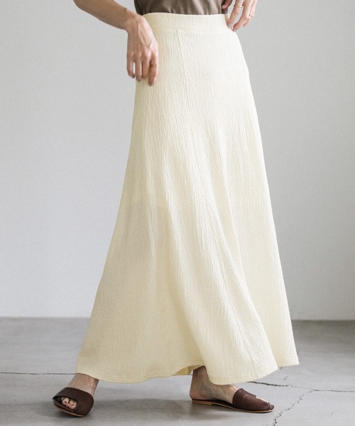 -point- & -styling-ラインが上品に広がるフレアスカートの登場。腰回りがすっきりしたシルエットに動きのあるデザインが女性らしく華やかに着こなせるアイテム。きちんと感のあるデザインながらもウエスト部分はゴム仕様で楽な履き心地が嬉しいポイント◎ご自宅で手洗いが可能です。シャツやブラウスで落ち着いたキレイめスタイリングに足元はスニーカーではずしたり、ラフにTシャツ合わせのスタイリングにはサンダルなど抜け感のあるコーディネートがおすすめです。バックウエストゴムロングスカート----------------------------素材 (表地)ポリエステル95%・ポリウレタン5% (裏地)ポリエステル100%----------------------------伸縮性 ★★☆☆☆生地の厚さ ★★★☆☆裏地 あり----------------------------※モニター・環境等により実際の商品と多少色味が異なって表示される場合がございます。 予めご了承をお願いいたします。=======================■袋梱包の為、染料による特有の匂いが抜けきれず、匂いがする場合がございますが不良品にはあたりません。 上記注意点での返品、交換はお断りします。ご了承の上お買い求めくださいませ。■本製品は生産過程におきまして色味、サイズ感等若干の誤差が出る場合がございます。予めご了承くださいませ。=======================【お買いものをお楽しみいただく為に!】▼商品のお気に入り登録完売カラーの再入荷通知や、ラスト1点の通知、セールの通知も受け取ることができます。▼ブランドのお気に入り登録新商品や再入荷など、いち早くブランドのお得な情報を受け取ることができます!