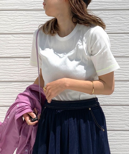 着回しの効くシンプルなリブTシャツです。 裾や袖、内側の糸をカラー糸にしてシンプルすぎないTシャツに仕上げています。 ブラック→ピンク アイボリー→イエロー すっきりめなサイズ感でレイヤードコーデにもおすすめ。 伸縮性のある素材を使用しているので幅広い体系の方に着ていただける一着です。 《インフォメーション》 ◆商品のお気に入り登録 完売していても再入荷時に再入荷通知を受け取ることができますので、是非ご登録ください。 ◆ブランドのお気に入り登録 新商品や再入荷などの情報を受け取ることができますので、是非ご登録ください。